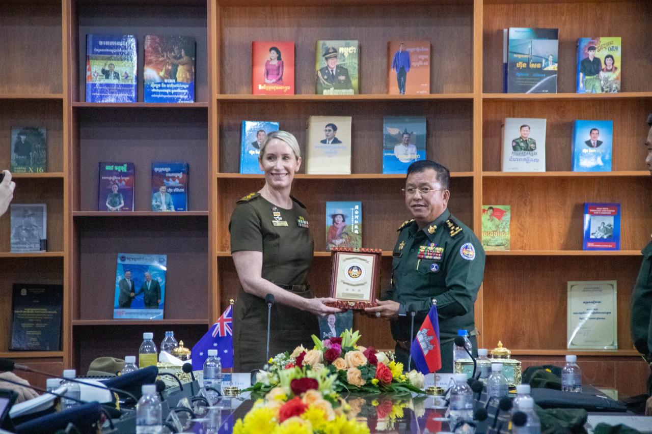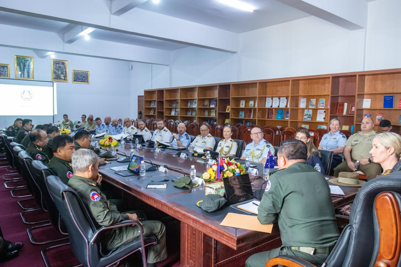 On the morning of Tuesday, October 7, 2025, the National Defense University (NDU) warmly welcomed a delegation from the Australian War College (AWC), led by Her Excellency Brigadier General Lara Troy, Commandant of the Australian War College, accompanied by three officers and thirteen students undertaking the Australian Command and Staff Course. The delegation visited the National Defense University of Cambodia with the following objectives: - Courtesy Call and Bilateral Discussions: The delegation paid a courtesy call on His Excellency Lieutenant General DOK Sopha, Rector of the National Defense University, to discuss ways to strengthen and expand cooperation between the two defense educational institutions. Discussions focused on potential collaboration in short-term human resource training and the development of national security courses at NDU. During the meeting, His Excellency the Rector also extended an invitation to Brigadier General Troy to attend the 27th ASEAN Regional Forum Heads of Defence Universities, Colleges, and Institutions Meeting (ARF HDUCIM), which will be hosted by the National Defense University and co-chaired with the Canadian Defence Academy in November 2025. - Academic Exchange: Both sides delivered presentations on their respective institutional structures and training programs, followed by a lively question-and-answer session aimed at sharing experiences and best practices in defense education. - Cultural Engagement: The visit concluded with the delegation attending classes at the College of Social Sciences and Languages, providing participants with the opportunity to learn more about the culture of the Royal Cambodian Armed Forces and Cambodian society. It is noteworthy that the Australian Defence Force has been a long-standing partner of the National Defense University since 1994, particularly in English language training and human resource development. In recent years, this partnership has expanded to encompass a broader range of cooperative activities, including leadership exchanges, expert visits, and strategic-level training programs, further deepening the enduring friendship and cooperative partnership between the two institutions.