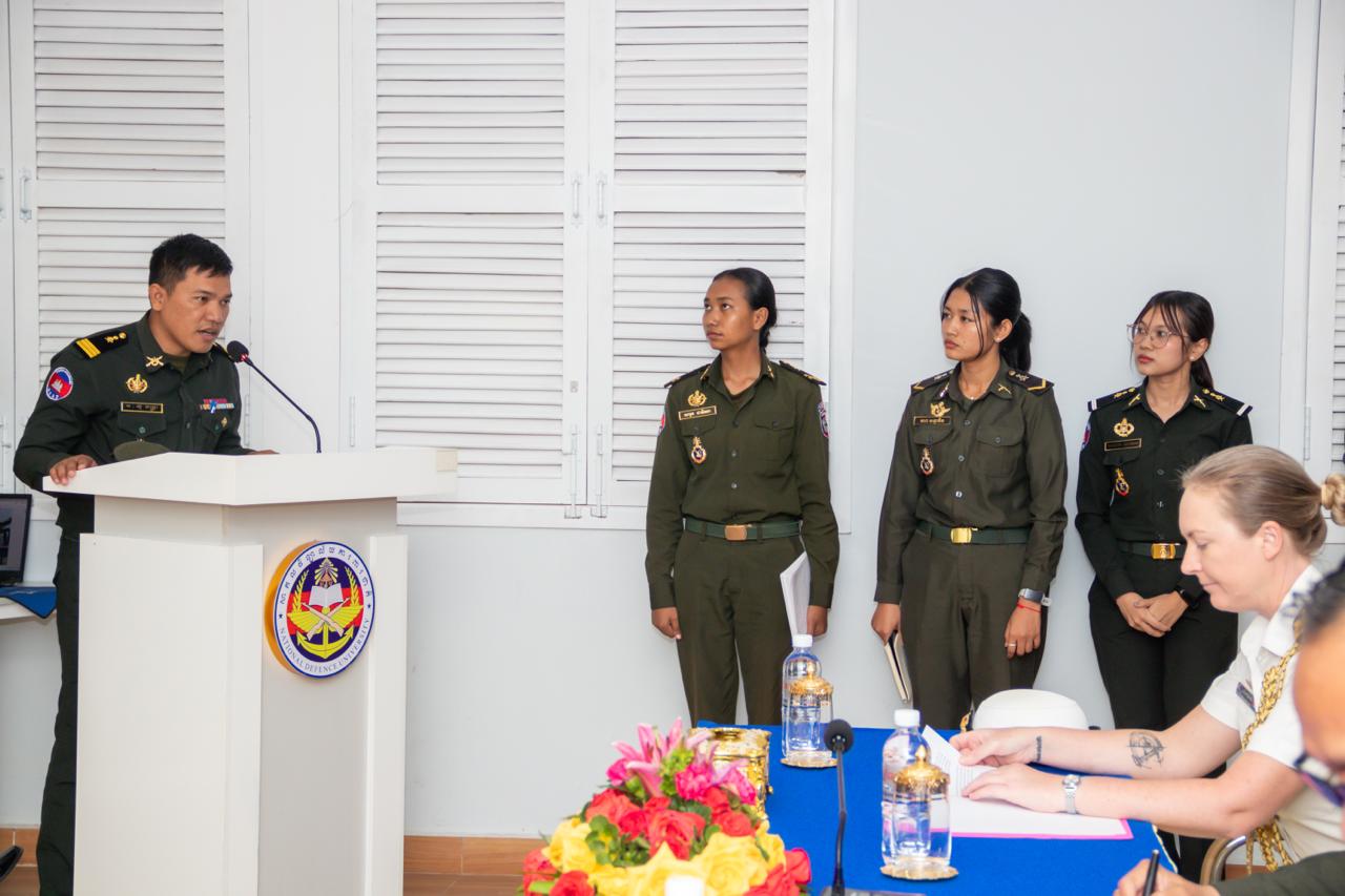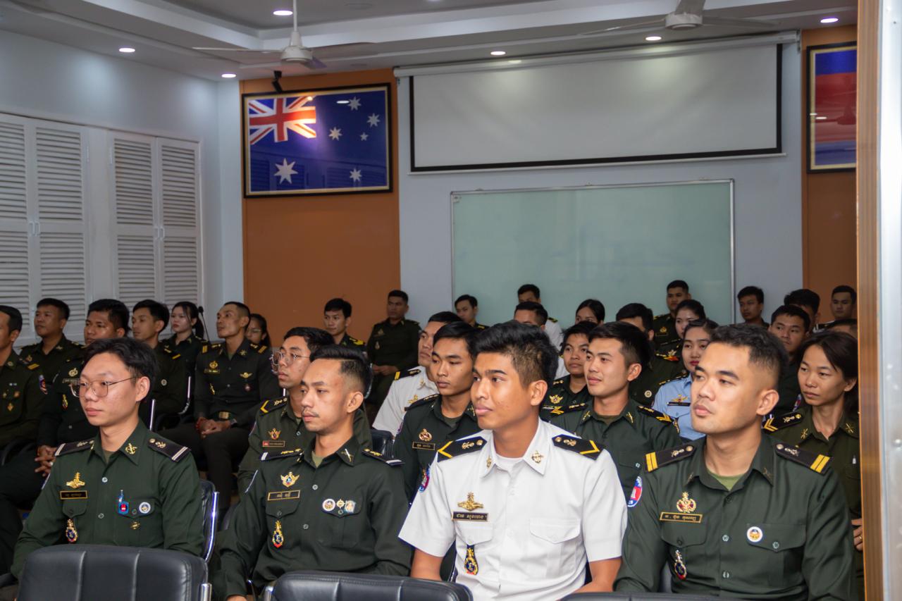 On the afternoon of Wednesday, December 3, 2025, the College of Social Sciences and Languages organized a presentation program on the results of the General English Program students’ study tour to Kep and Kampot provinces. The event was held under the high chairmanship of His Excellency Lieutenant General DOK Sopha, Rector of the National Defense University, and was joined by Lieutenant Commander Karleah Fitzpatrick, Assistant Australian Defense Attaché to Cambodia. It is worth noting that this study tour is an annual program sponsored by the Australian Defence Force, aimed at encouraging outstanding students with strong academic discipline to gain broader knowledge of the geography, history, and culture of various regions of Cambodia.