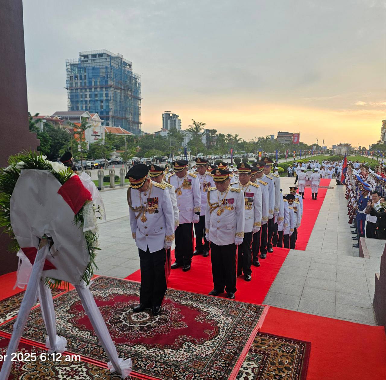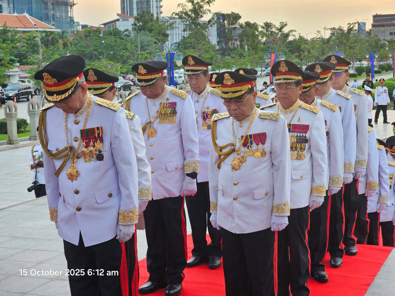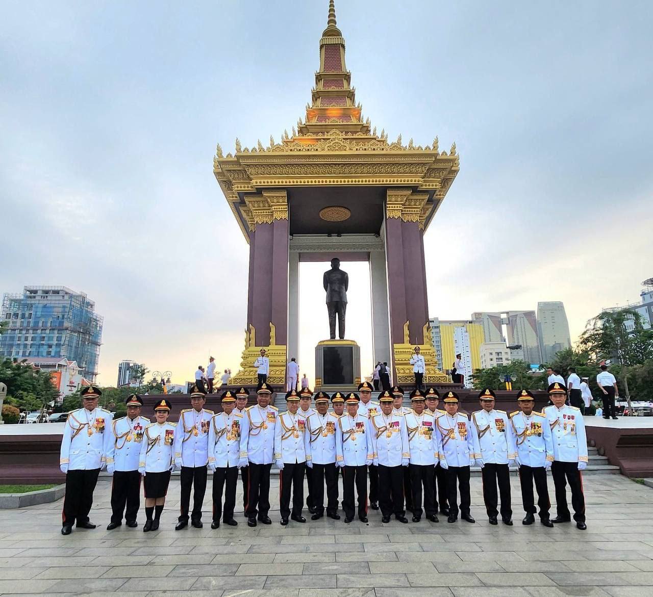 On the morning of Wednesday, October 15, 2025, His Excellency Lieutenant General DOK Sopha, Rector of the National Defence University, accompanied His Excellency General Chay Sang-yoon, Permanent Secretary of State of the Ministry of National Defence, as the high representative of His Excellency General Tea Seiha, Deputy Prime Minister and Minister of National Defence, to attend the royal ceremony in commemoration of the 13th anniversary of the passing of His Majesty King Father Norodom Sihanouk, the great hero and father of Cambodia’s independence, territorial integrity, and national unity, “Preah Borom Ratanak Kaudh”, our most revered and sanctified monarch.