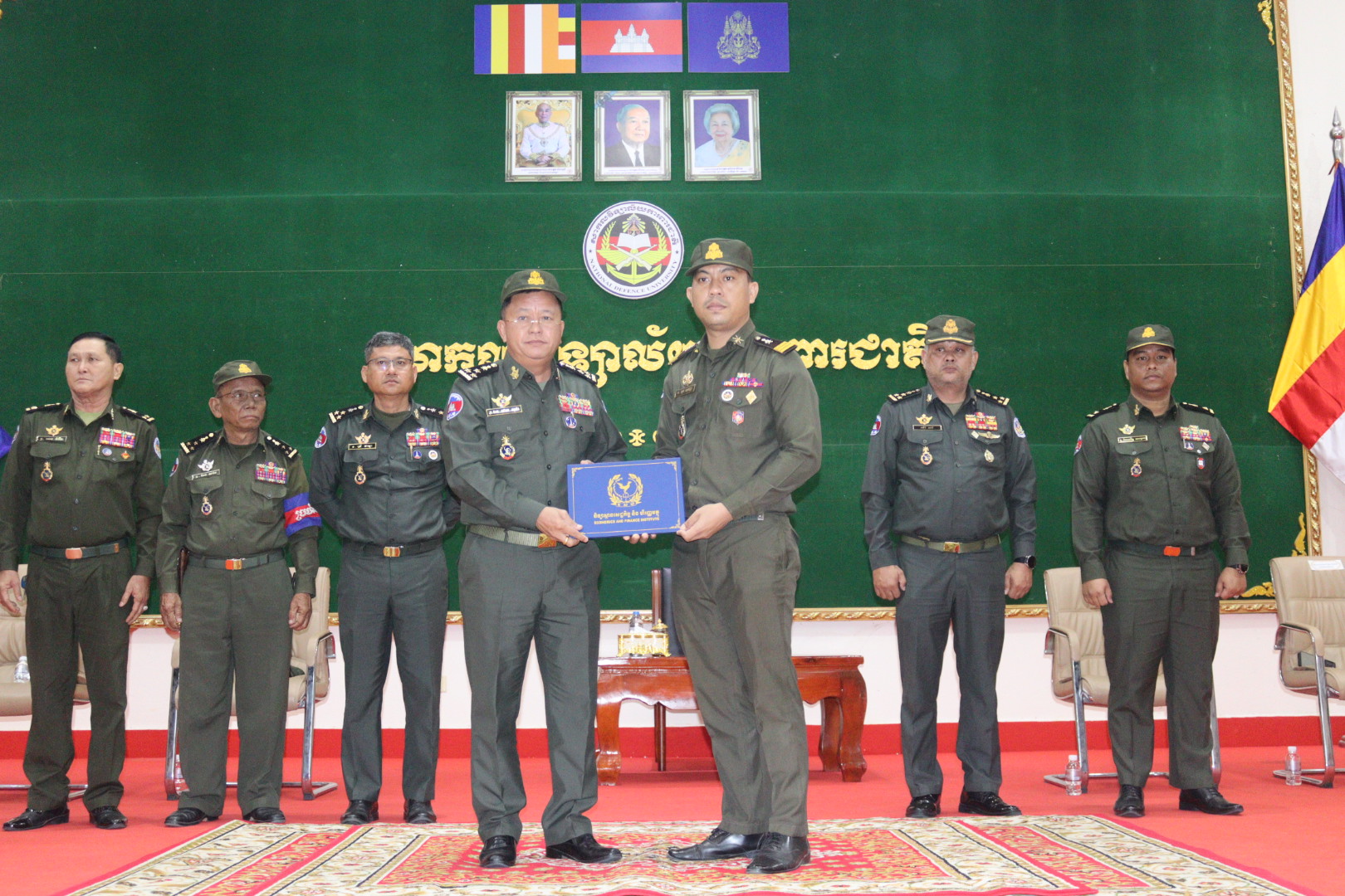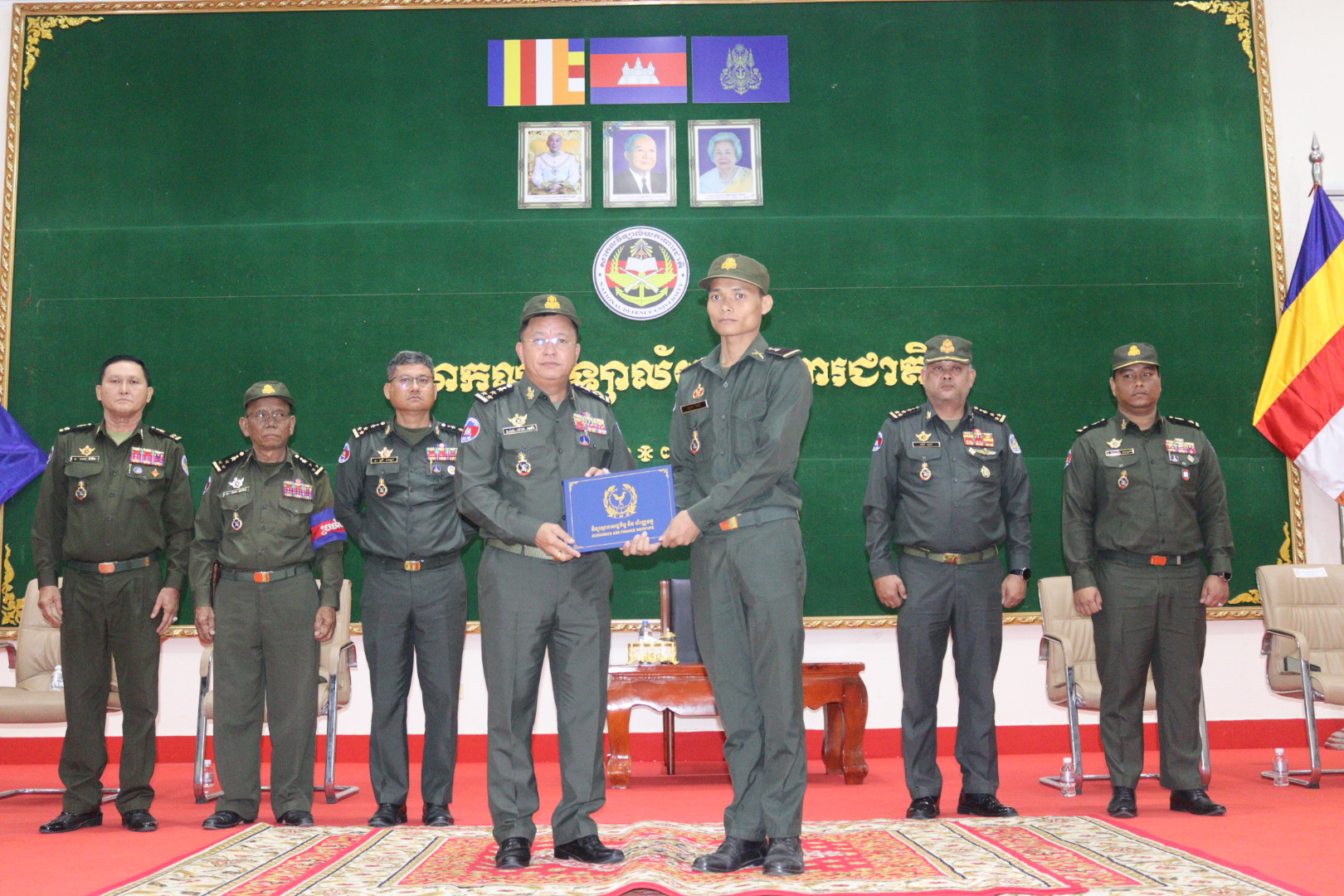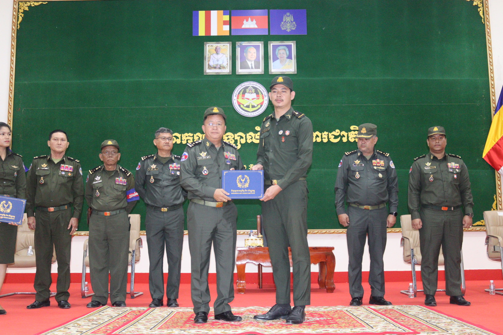 On the morning of Friday, February 27, 2026, His Excellency Lieutenant General Dok Sopha, Rector of the National Defense University, presided over a certificate awarding ceremony. On this occasion, he had the honor of presenting certificates of completion, certificates of position affiliation, public accounting skills certificates, and first-level advanced accounting certificates to students of the National Defense University who successfully graduated from the Institute of Economics and Finance.