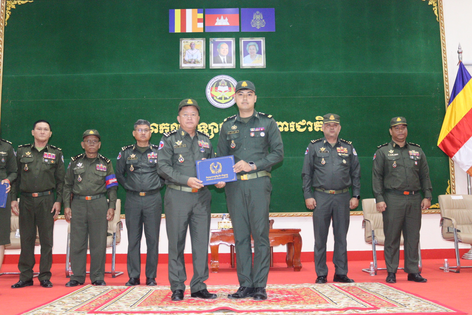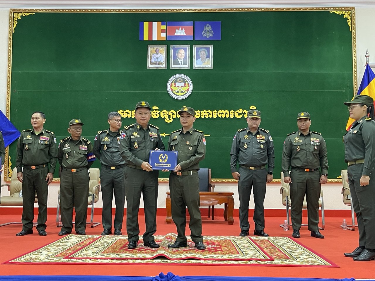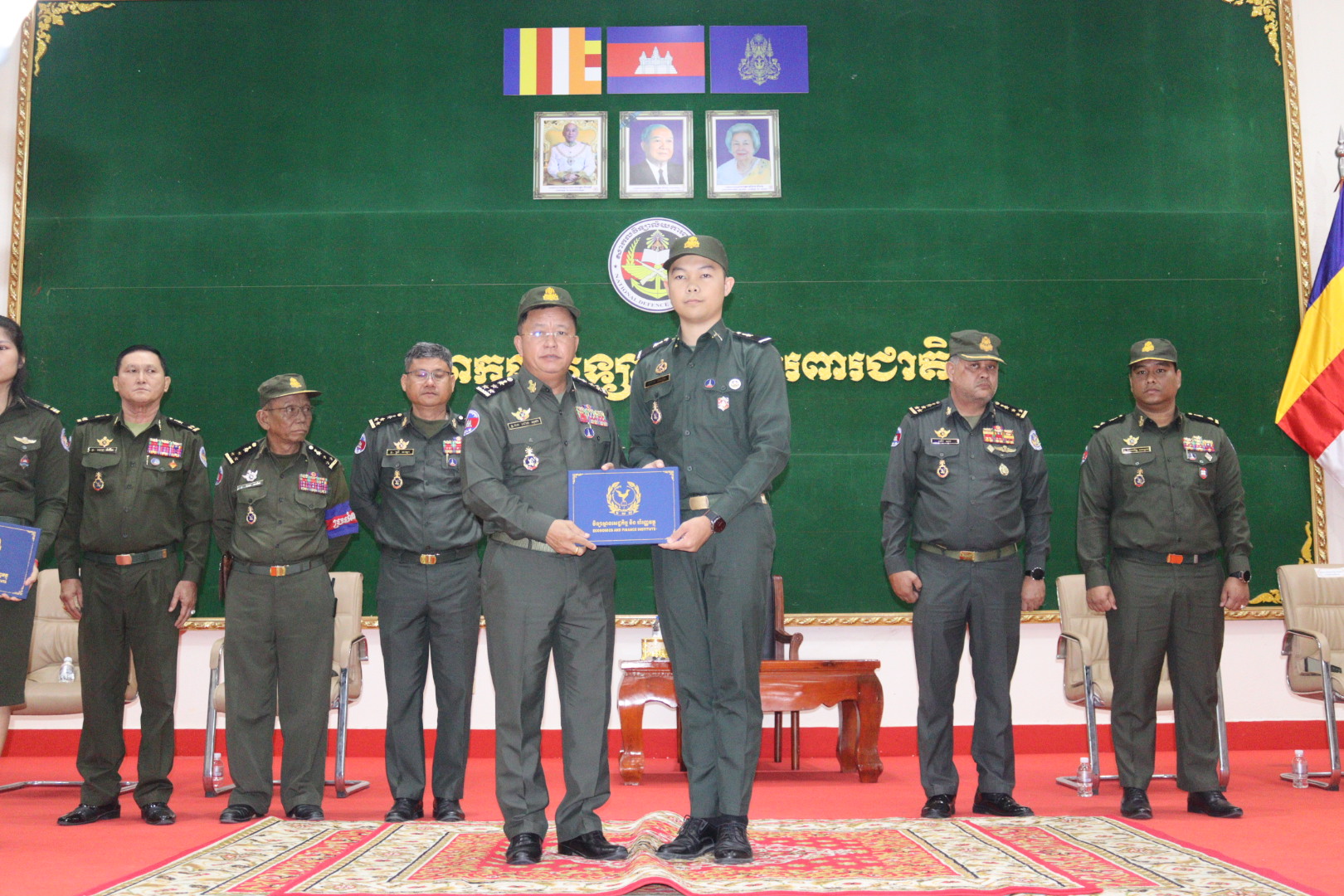 On the morning of Friday, February 27, 2026, His Excellency Lieutenant General Dok Sopha, Rector of the National Defense University, presided over a certificate awarding ceremony. On this occasion, he had the honor of presenting certificates of completion, certificates of position affiliation, public accounting skills certificates, and first-level advanced accounting certificates to students of the National Defense University who successfully graduated from the Institute of Economics and Finance.