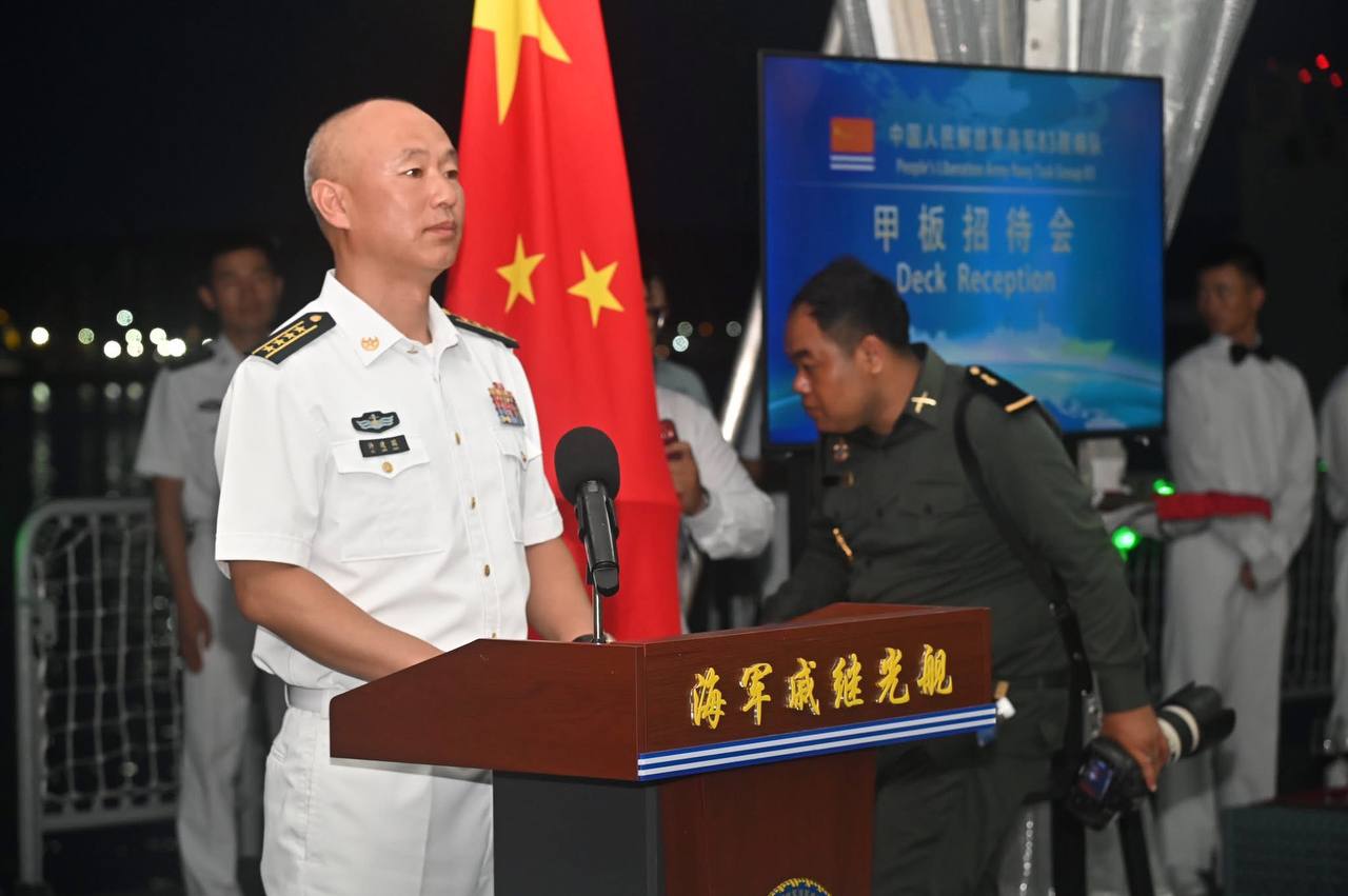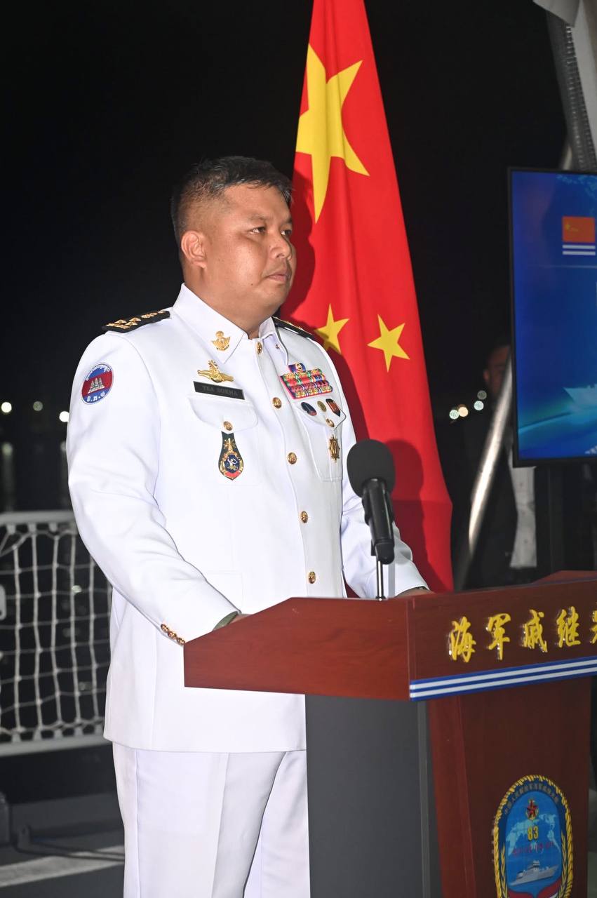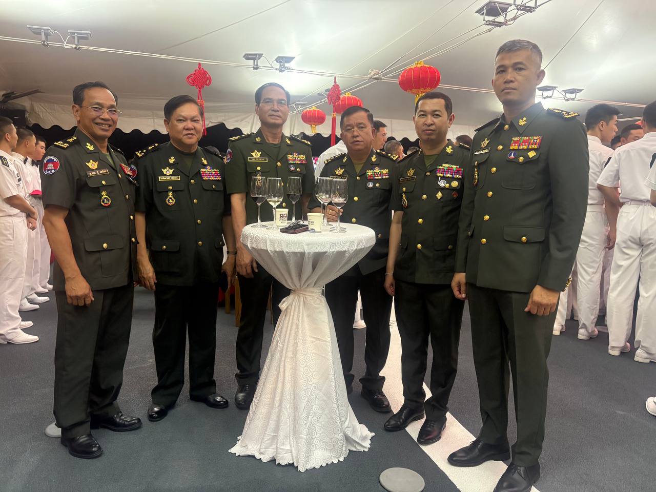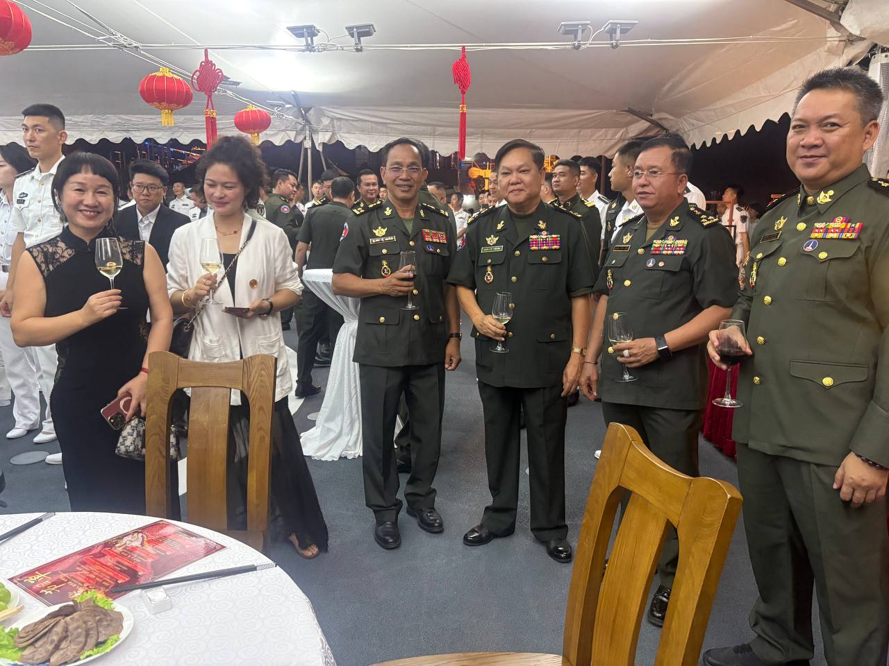 On the evening of Saturday, October 11, 2025, His Excellency Lieutenant General Dok Sopha, Rector of the National Defense University, attended a reception welcoming the Chinese People's Liberation Army Navy ship Qi Jiguang (PLAN 83). The event was held under the high chairmanship of His Excellency General Tea Seiha, Deputy Prime Minister and Minister of National Defense, at the Preah Sihanouk Autonomous Port.